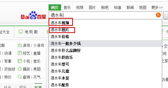 我們做排名的時候都必須要分析用戶的需求,比如用戶搜索近期正在熱播的中國好聲音,用戶最想看的是直播,所以我們做直播滿足了用戶需求。這樣說的意思是,中國好聲音是主關(guān)鍵詞,如果你想把這個詞做起來,你就必須要做直播。以此類推,我們也可以運(yùn)用在我們網(wǎng)站上,以我公司的網(wǎng)站為例,我們要做的關(guān)鍵詞是灑水車,通過相關(guān)搜索我們可以發(fā)現(xiàn),我們做灑水車最大的需求是灑水車視頻和灑水車圖片,請看下圖: