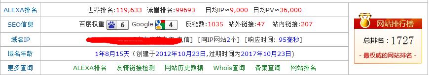 一般情況之下站長們都認(rèn)為首頁權(quán)重高了,自然可以帶動(dòng)內(nèi)頁從而獲得高流量和高排名,所以90%的站長都是從首頁與目標(biāo)關(guān)鍵詞開始入手優(yōu)化網(wǎng)站。但是今天筆者的方法恰恰與大家相反,這是我半年之前開始優(yōu)化的一個(gè)網(wǎng)站,完全從內(nèi)頁與長尾關(guān)鍵詞出發(fā),達(dá)到提升全站權(quán)重的一種方法。下面是這個(gè)網(wǎng)站的截圖: