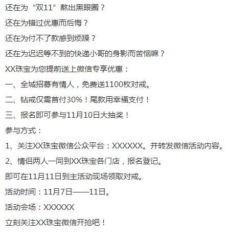 給大家看一段某地珠寶店做的雙十一活動(dòng)廣告: