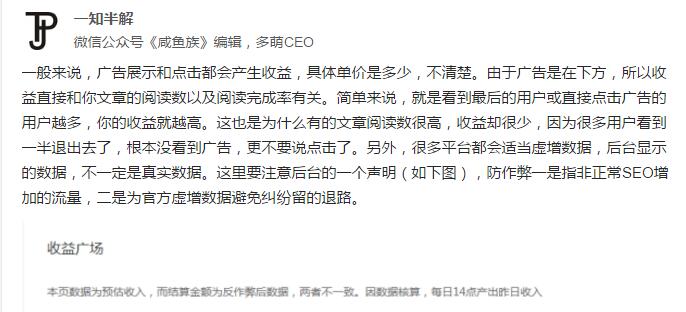 需要說明的是:閱讀量和點(diǎn)擊量要成比例不能過高,按照我做百度聯(lián)盟的經(jīng)驗(yàn)。不要超過 1%。僅供參考,具體的大家測試測試,發(fā)群里。目前,沒有懲罰機(jī)制。